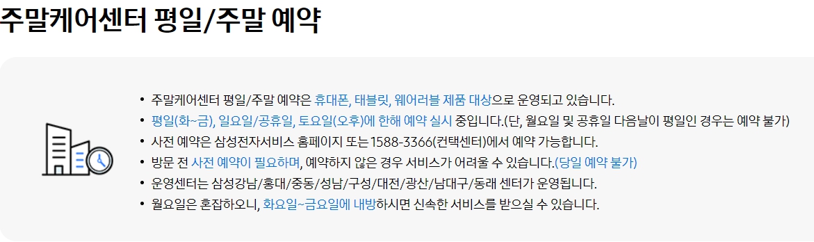 일부 서비스센터는 사전 예약이 가능해서, 미리 예약하면 대기 시간을 줄일 수 있어요. 삼성전자 공식 홈페이지나 고객센터(☎ 1588-3366)를 통해 예약할 수 있습니다.