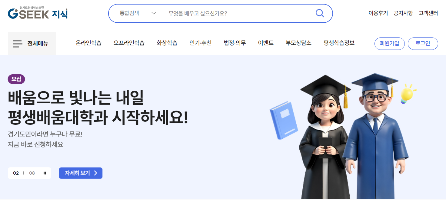 경기도가 운영하는 'GSEEK(지식)'은 연령과 지역에 상관없이 전 국민이 사용할 수 있는 공공 온라인 학습 플랫폼입니다.