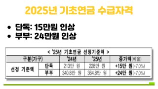 - 국민연금을 많이 받는 경우 일부 감액될 수 있음