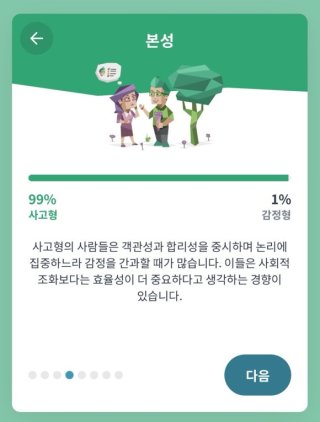 ENTJ, INFP처럼 나타나는 네 글자 결과는 각 성격의 조합을 의미하지만, 진짜 핵심은 그 이후 설명입니다. 해당 유형의 장단점, 이상적인 직업, 인간관계에서의 특징 등이 구체적으로 안내됩니다. nbti 테스트 결과를 단순히 재미로 넘기기엔 너무나 실용적인 정보들이 담겨 있습니다.